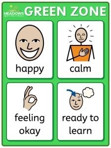 Green Zone: The Green Zone depicts calmness and the feeling of being in control. A person in the green zone may be described as content, focused or happy and certainly ready to learn.