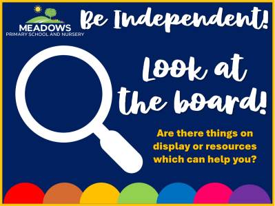 In each of our classrooms in Years 1 to 6, we have our 'Be Independent' posters on display. We use them in lessons to promote independence and ensure children have the strategies needed to be independent!